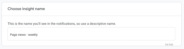 Set the name of these insights. This is the name you’ll see in the notifications, so use a descriptive name.