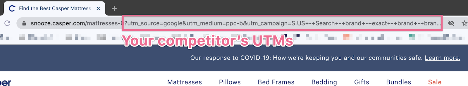 Check your browser’s URL bar, if your competitor is using UTM parameters, you will be able to see them there: