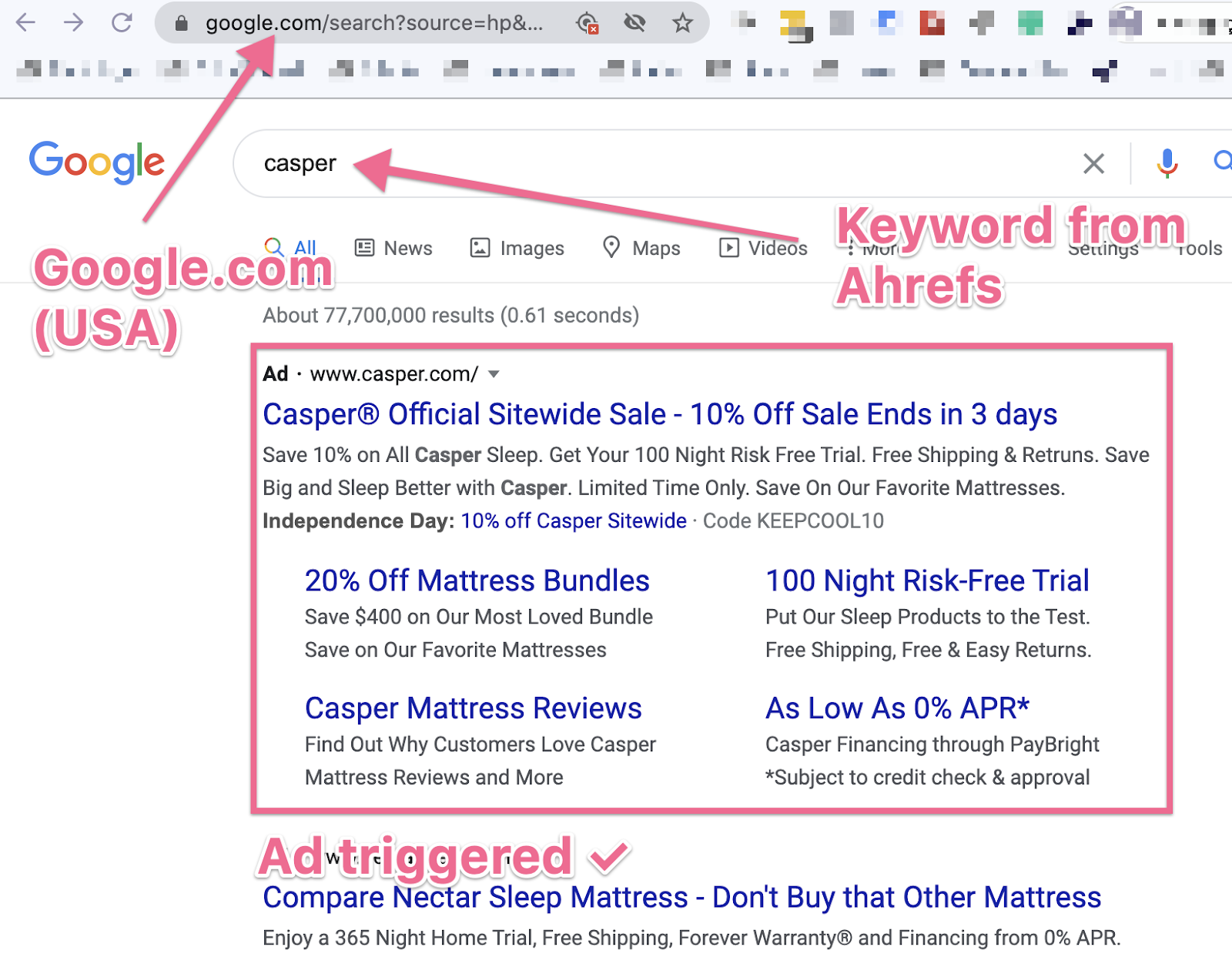 If everything went well, you will likely see your competitor’s ad show up. Click on the ad.