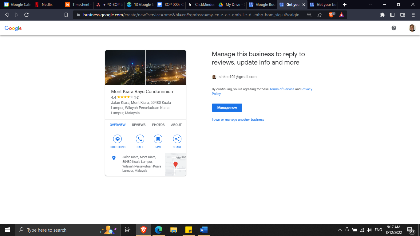 Visit the Google Business Profile site and click “Manage now”