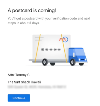 Prerequisites or Requirements: Google sends a physical postcard to verify that the business really exists — even if this business doesn’t offer a location to service customers, you will need to provide an address where Google can send this postcard.