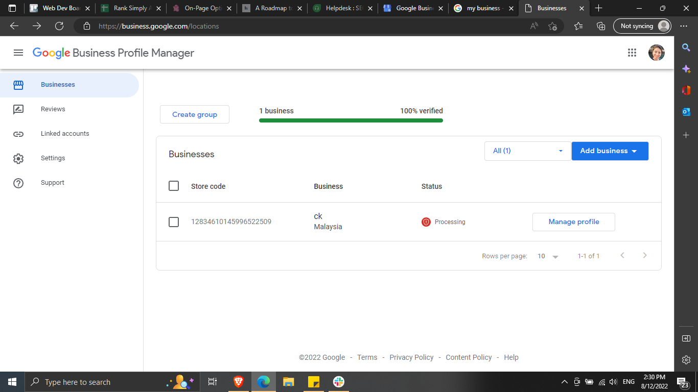 Your business is now verified! You can now manage all of your settings in Google Business Profile.