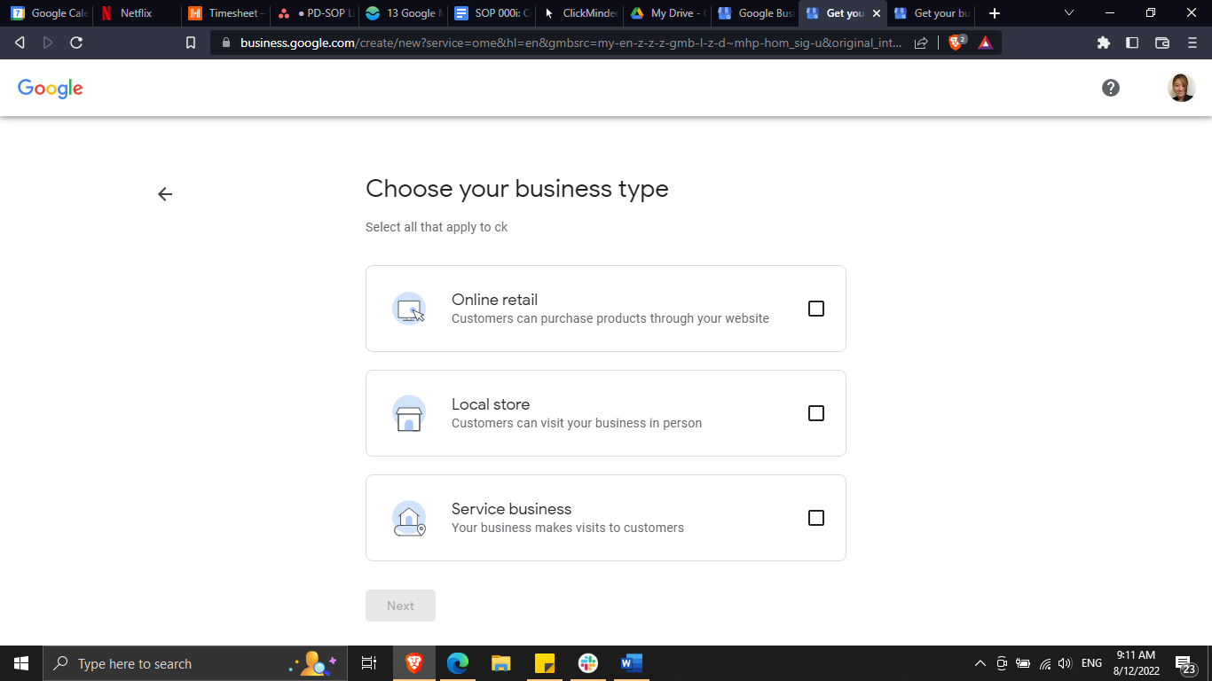 If you’re setting up a Google Business Profile account for your own business: