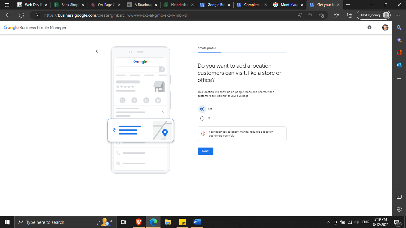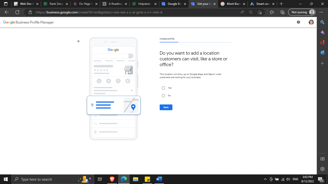 If you have a physical location where your potential customers can go (e.g. store, office, etc), select “Yes”