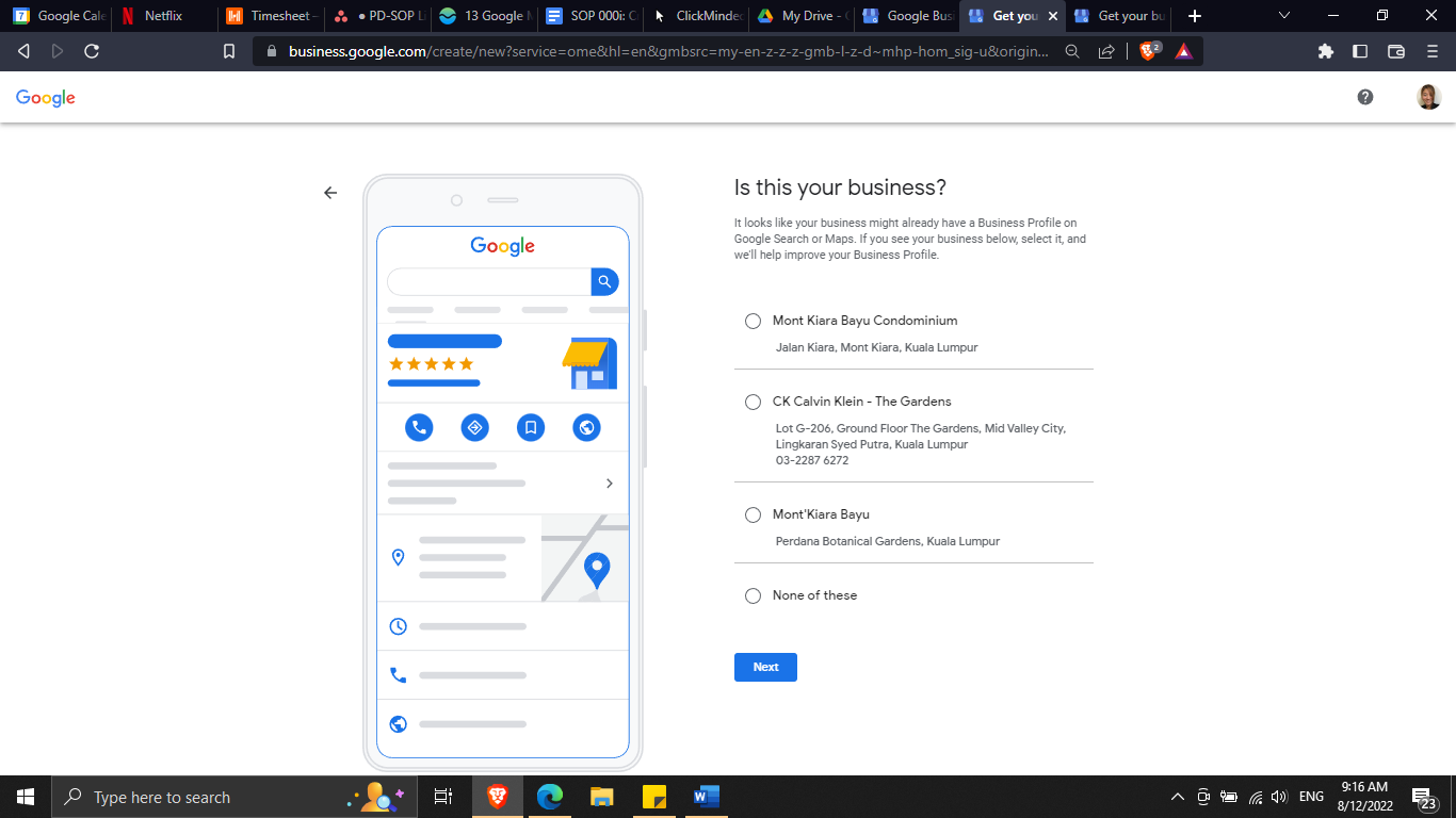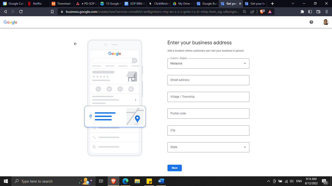 Enter your business address and click “Next”