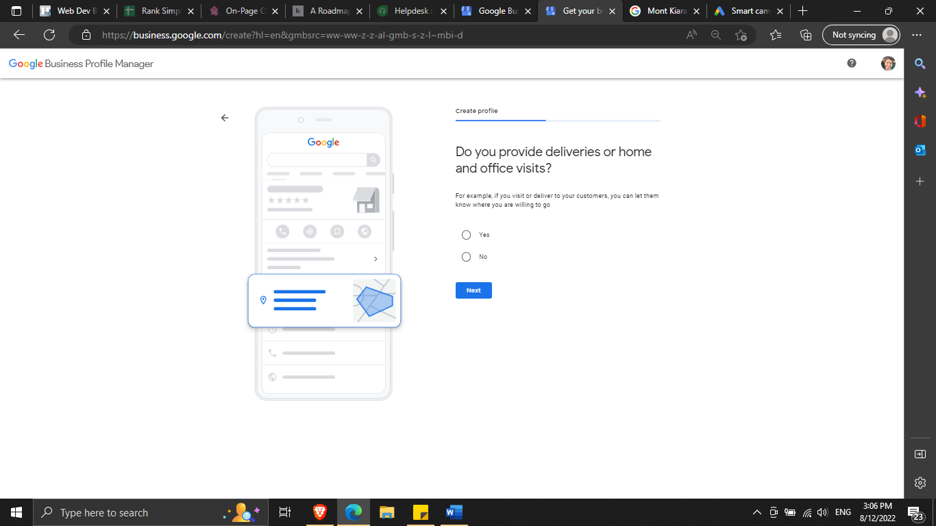 Next, you’ll have the option to select the location area where you offer your services or products. Click “Yes” to proceed.