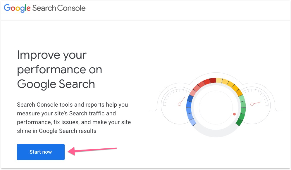 Sign in to your Google Search Console account by clicking here and then “Start Now”.