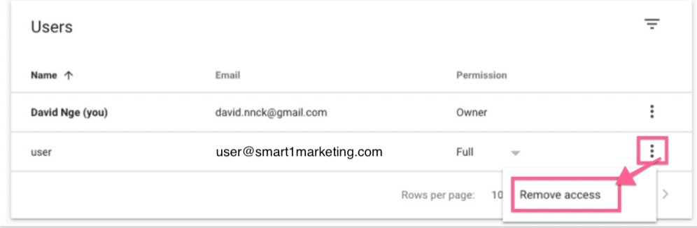 Click on the three dots menu for the user you wish to remove access and select “Remove access”.