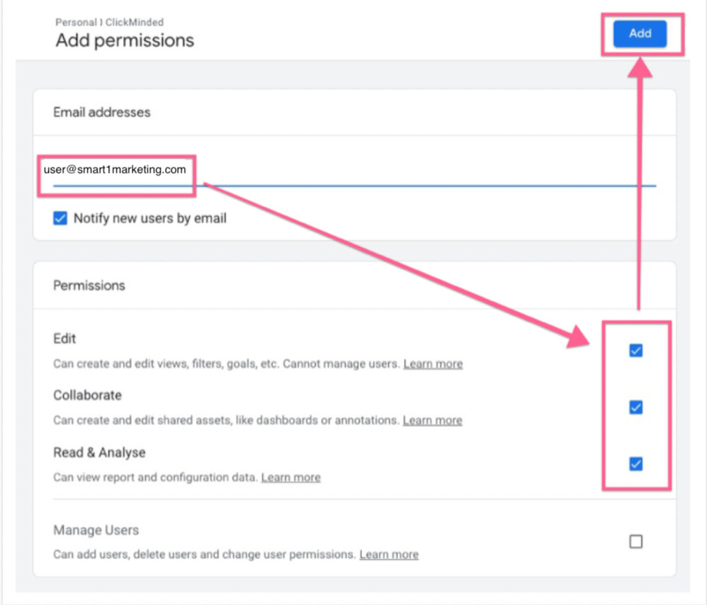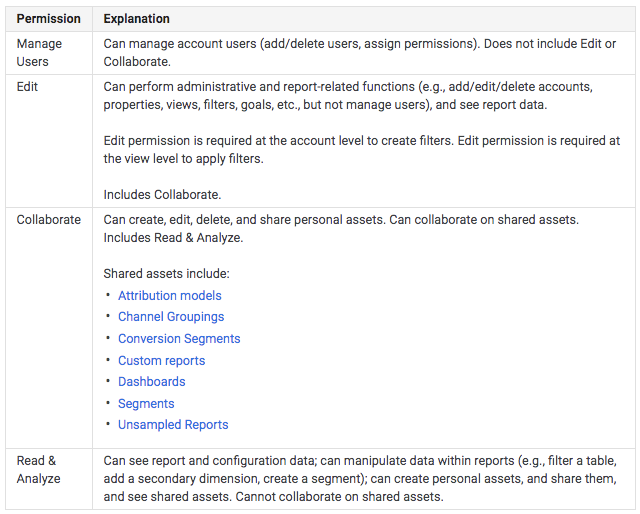 Why this is important: Google Analytics allows you to grant access to other users so you can share your data with them, or give them access to create reports for your company. Granting access is the most secure way to share your site’s data without having to share your login details.