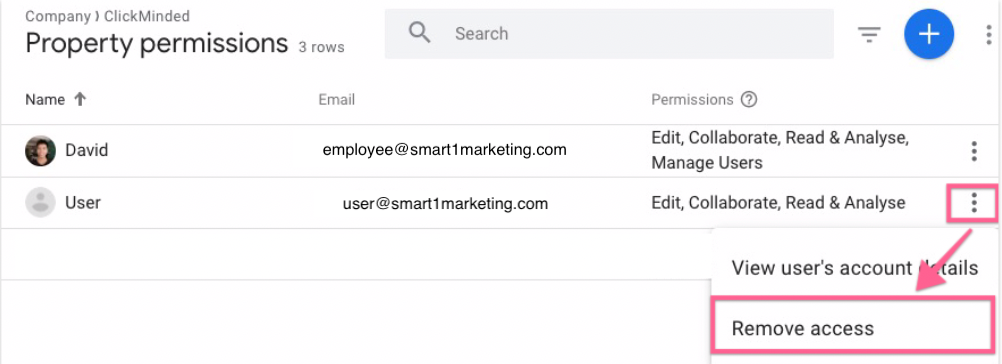 For each user you want to remove access, click on the three dots menu and select “Remove access”.
