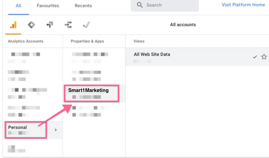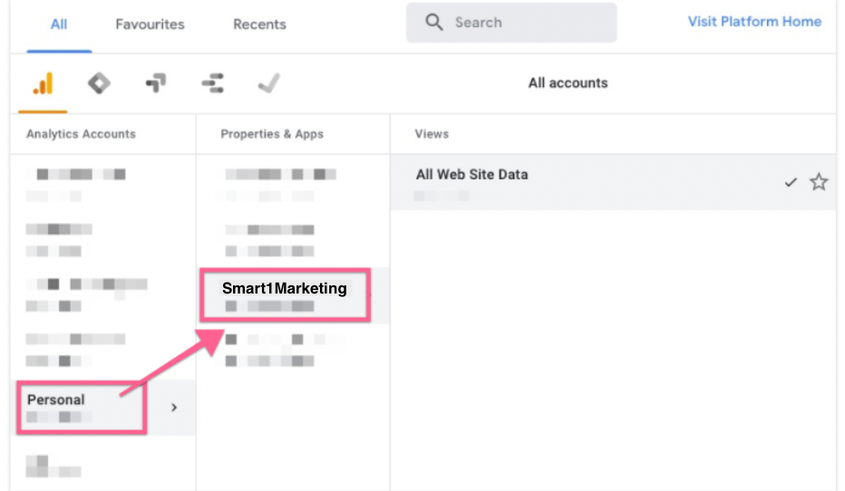 Make sure you are in the correct account (Google Analytics account that you want to share access to) by selecting it from the top menu.