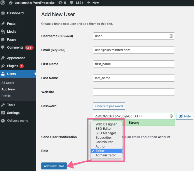 Note: If you’re unsure which role to grant the new user, refer to the section: User roles in WordPress.