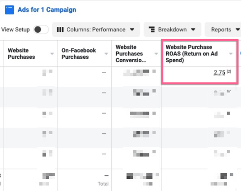 If your KPI is the ROAS you can check it by heading to the current account ad set.