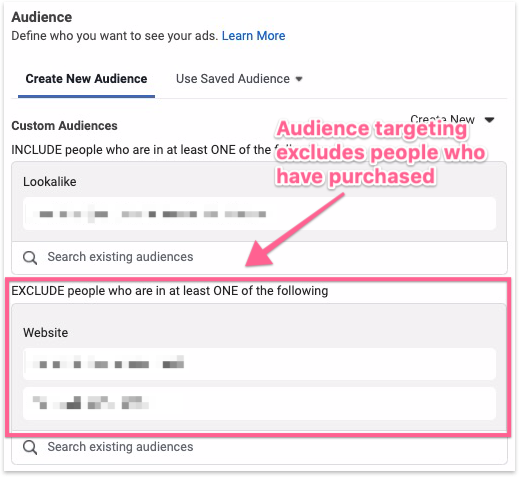 Note: Some ad sets DO NOT need to exclude customers. For example,