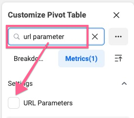 On the right panel where you can customize the pivot table, insert “URL Parameters”.