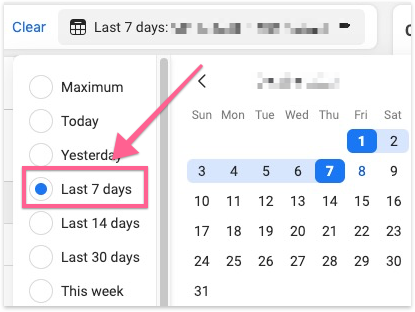 Update the Date for the report. If this is a weekly report, select “Last 7 days”. Otherwise, select the period you want to report.