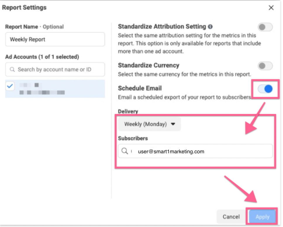 Why this is important: An automated report will help you and your team analyze (and optimize) the current ad performance effectively.