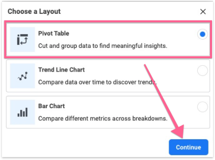 Select the “Pivot Table” layout. You can change this layout any time in the future.