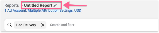 Rename the report by hovering over “Untitled Report” at the top, click the “pencil” icon, and write a new report name. For example: