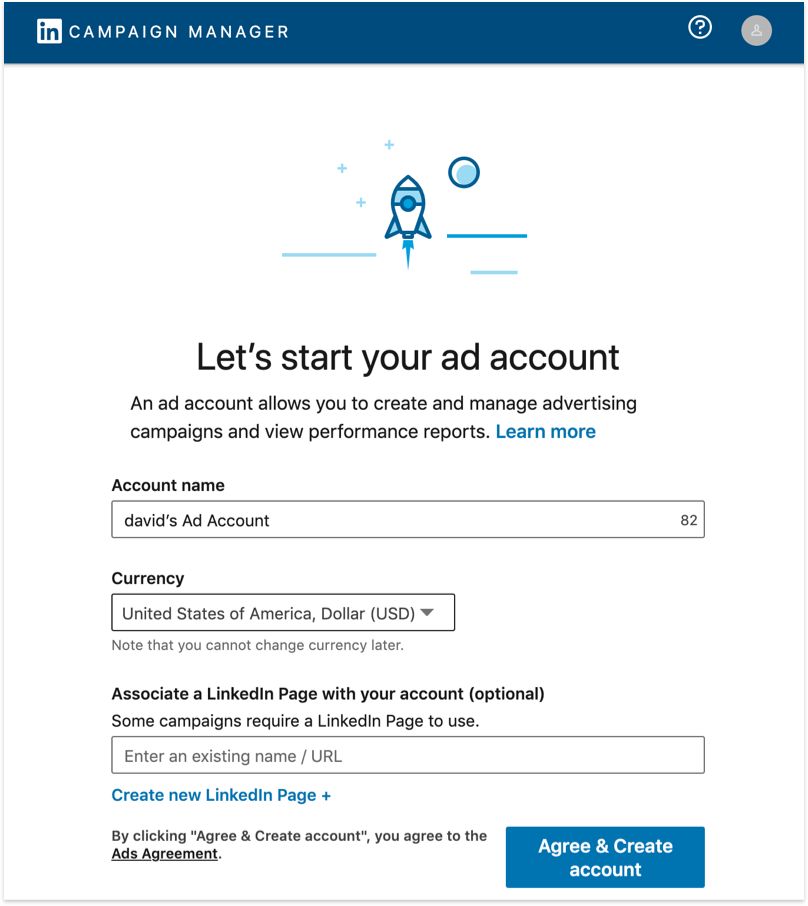 Why this is important: You need to create an ad account before you can start running LinkedIn ads.