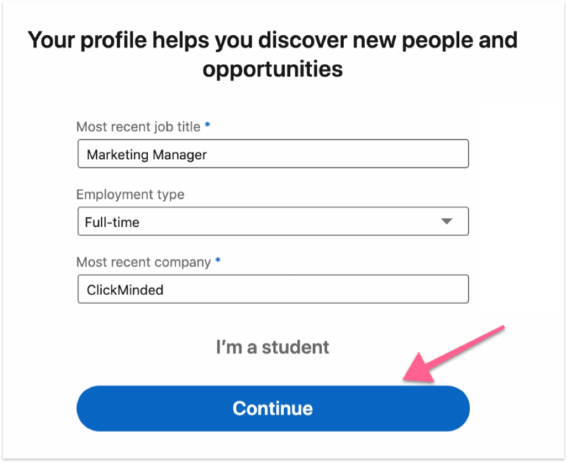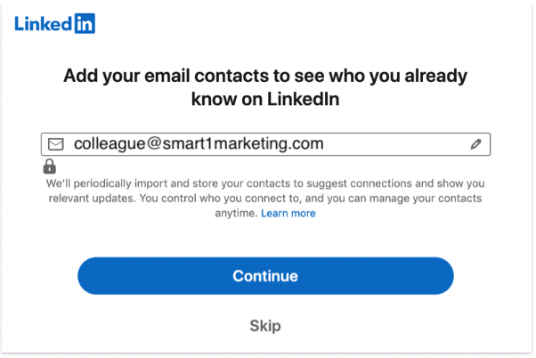 Get a link to download the LinkedIn App. You can also choose to skip this step.