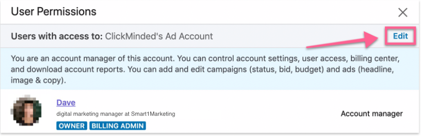 Why this is important: LinkedIn allows you to grant access to other users so they can manage your ad account. Granting access is the most secure way to share your LinkedIn account without having to share your login details.