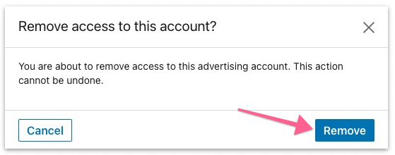 Select “Remove” in the confirmation box to remove the user from your ad account.