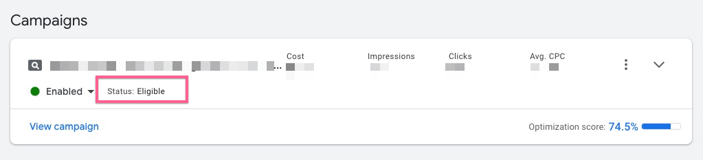 At this point the campaign and ads are not live yet. Google will review all your ads automatically. Once your campaign passes Google’s ad review process (takes up to 1 business day), the status of your ad campaign will turn eligible and your ad will start running.
