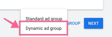 Important: Make sure you select the “Dynamic ad group” and repeat steps 15-16 for each category of the page(s) you plan to run Dynamic Search Ads for.