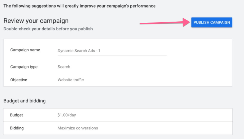 That’s it! You have now set up and published your dynamic search ad campaign.