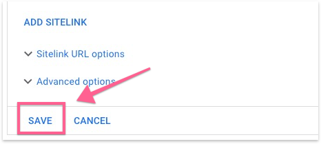 Fill in the ad copy details for your site link extensions. Then click “Save”.