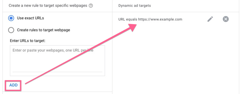 Targeting Source — By default Google will create dynamic ads based on all of your web pages that are currently indexed on Google. Leave this option as is unless you want Google to specifically use a subset of pages on your website, which you then have to select “Use URLs from my page feed only” and upload a Google Sheet or Excel file.