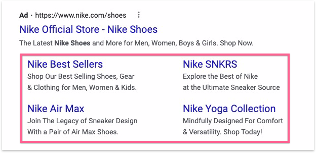 Sitelink extensions are additional links and ad copy that show up below your main ad. They take up more real estate and allow you to direct people to specific pages on your site.