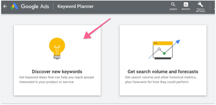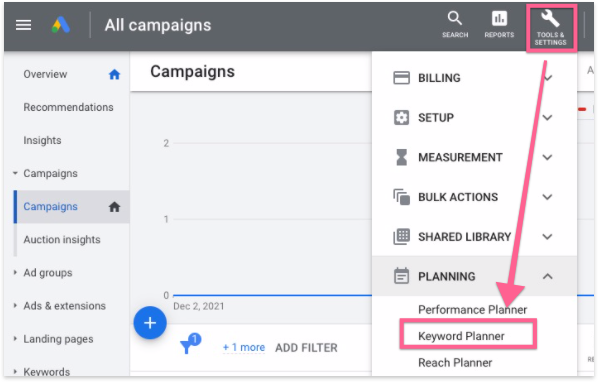 From the top navigation, click “Tools & Settings” and look for “Keyword Planner” under “Planning”.