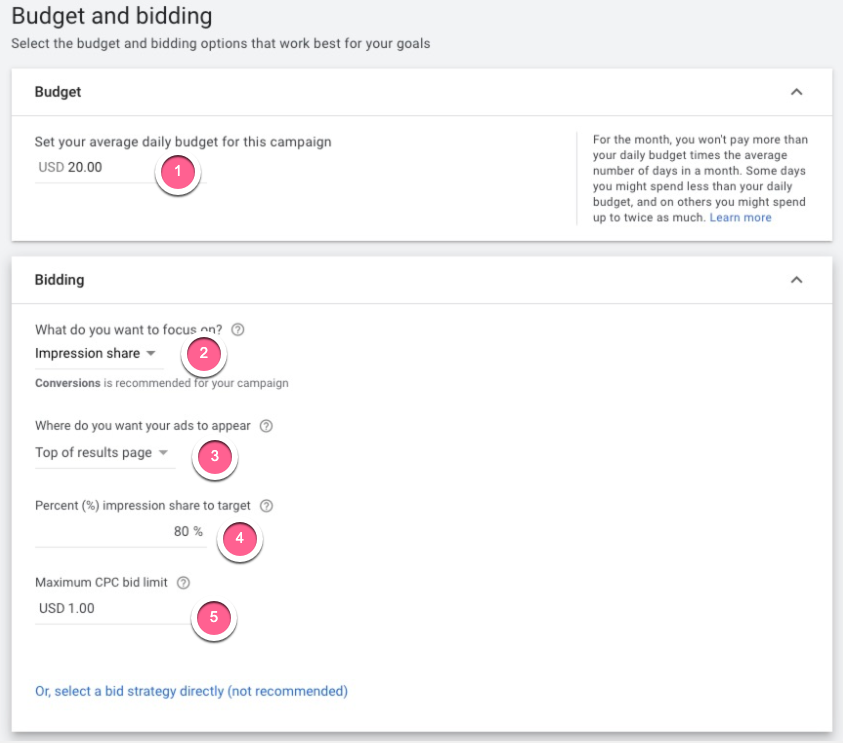 Why this is important: Setting a bidding strategy is a prerequisite for launching a Google Ad campaign, and selecting the right bidding strategy will greatly affect its performance.