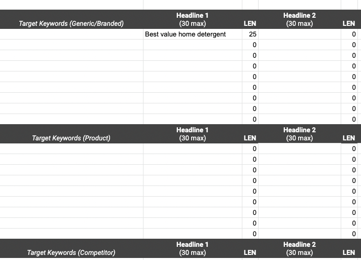 Note: The target keyword is mandatory in headline 1, if your copy exceeds the character limit, omit the adjective.