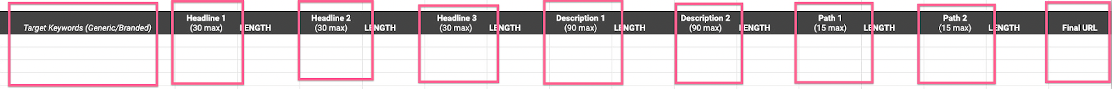 You are required to fill in the target keywords, headlines, descriptions, path and the final URL of the landing page.