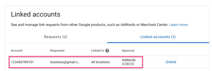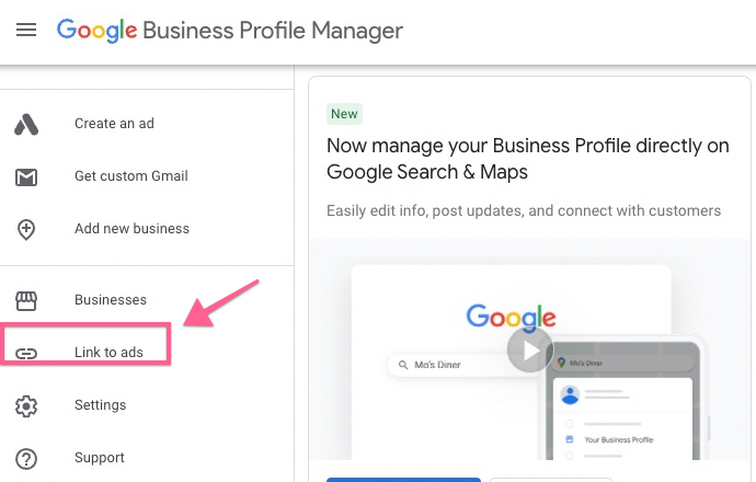 Confirm that your Google Ads account is linked to your Google Business Profile.