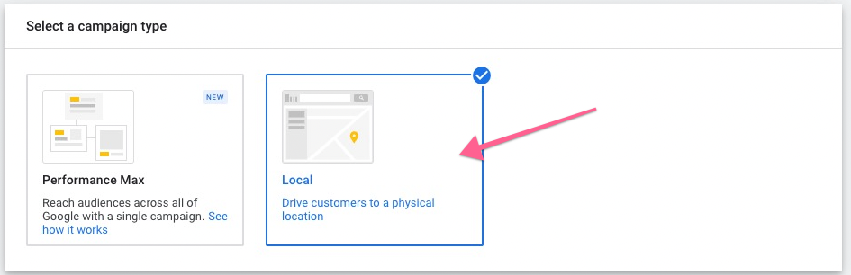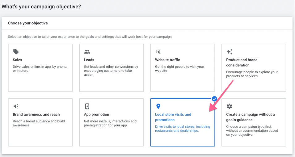 In the new campaign settings, select “Local store visits and promotions” as campaign objective.
