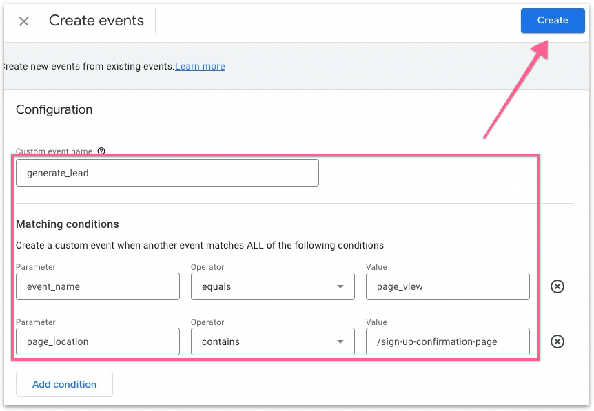 That’s it! You’ve now set up lead tracking in your Google Analytics 4 account.