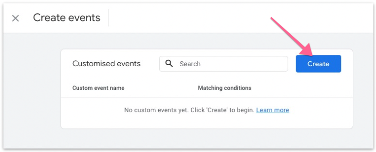 In the next screen, click “Create” to create a custom event.