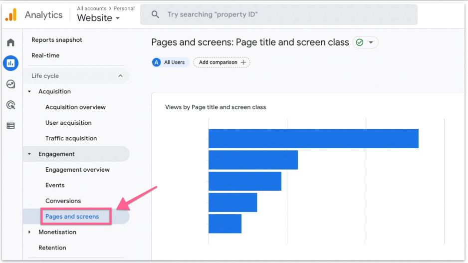 Make sure you’ve selected the right property (the website that you’ve implemented the Google Analytics 4 tracking code).