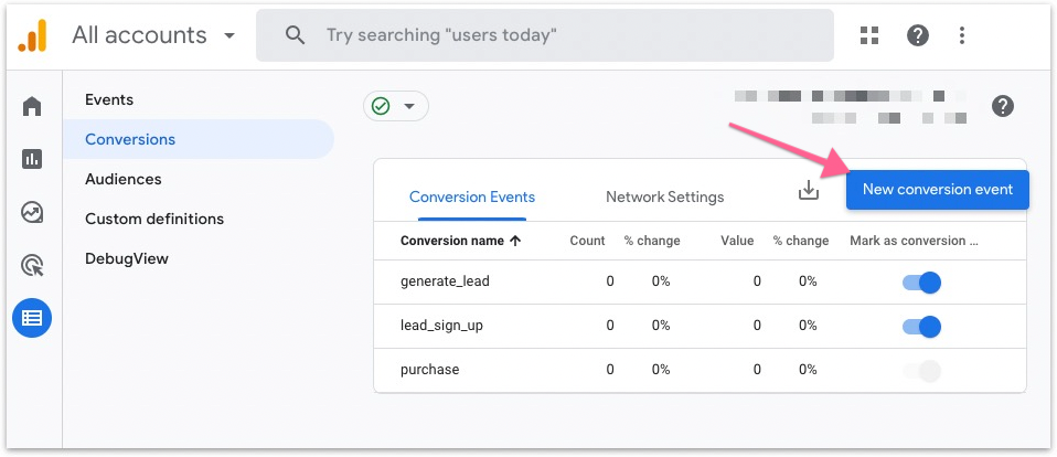 You should then see the new conversion event listed in the conversion events list.