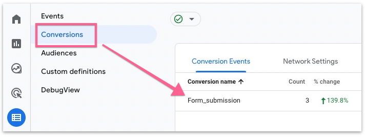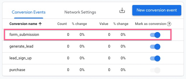 Set up new form submission as a conversion goal in Google Analytics 4