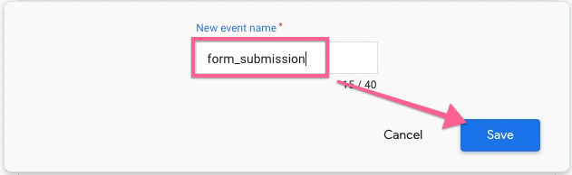 Name this conversion event. It should be the same name as the one you set up in Google Tag Manager earlier. Then click “Save”.