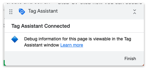 A new tab will open with your website loaded. You will also see a confirmation message that the Tag Assistant is connected.