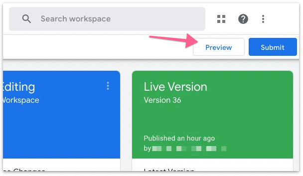Click “Preview”. This will activate Google Tag Manager’s Preview and Debug mode.