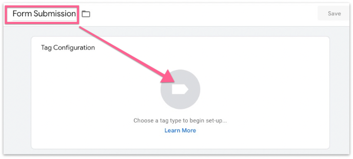 In this document we will fire an event when a user submits a form on our site, so we will name this tag “Form Submission”. Then click on the Tag Configuration icon.
