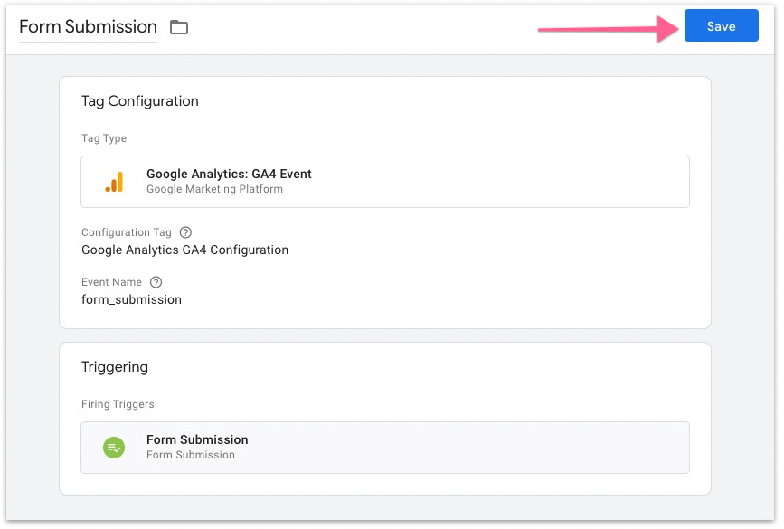 Once you’re done with the tag and trigger configuration, click “Save”.