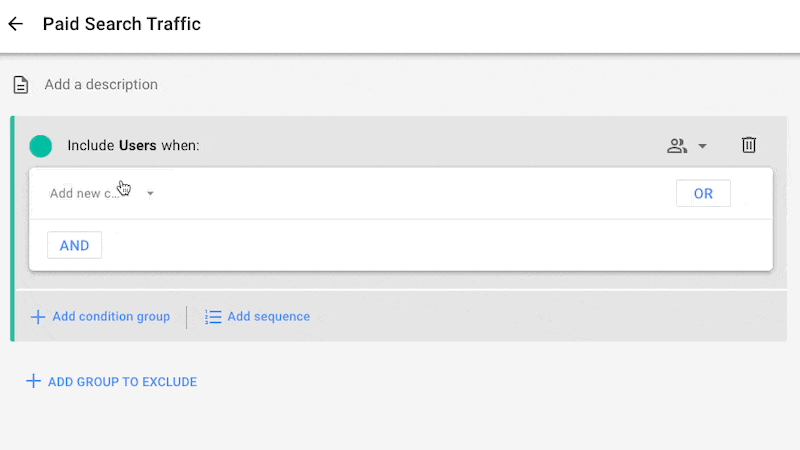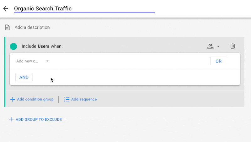 Then select a new condition (to filter the user segment).